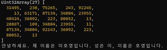 let encoded = encoding.encode("안녕하세요. 제 이름은 이호영입니다. 성은 이, 이름은 호영입니다.");