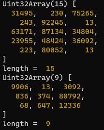 와 같이, 토큰별 ID와 길이를 알 수 있다. 토큰은 Uint32Array라는 배열로 저장된다.